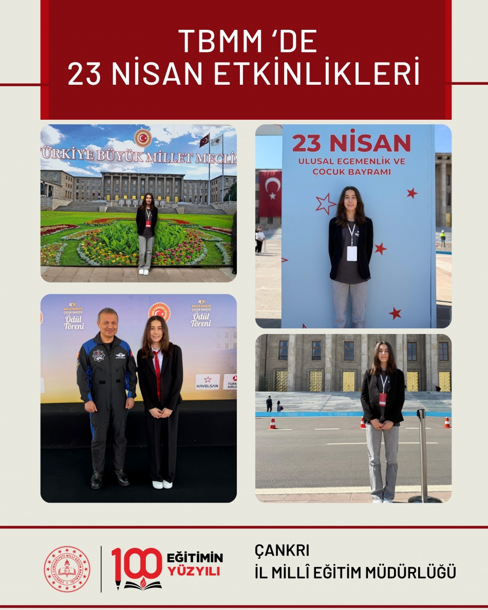 23 Nisan Ulusal Egemenlik ve Çocuk Bayramı dolayısıyla Türkiye Büyük Millet Meclisinde düzenlenen "Meclis Bahçesi, Çocuk Bahçesi" etkinliğine ilimizi temsilen Mehmetçik Ortaokulu Öğrencisi Fatma Rana Gökçe katıldı.